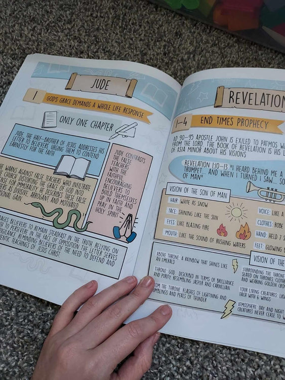 Includes dual-sided summary cards for every book, generous margins for notes, and durable cardstock designed for frequent use.